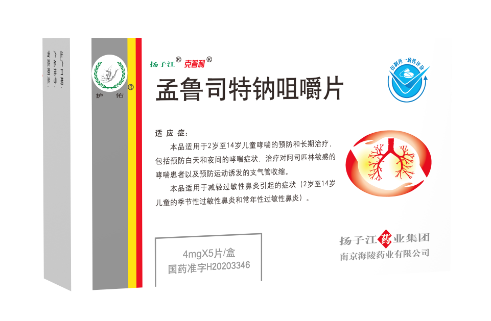 【適應癥】1.2歲至14歲兒童哮喘的預防和長期治療,包括預防白天和夜間的哮喘癥狀,治療對阿司匹林敏感的哮喘患者及預防運動誘發(fā)的支氣管收縮。2.減輕過敏性鼻炎引起的癥狀(2歲至14歲兒童的季節(jié)性過敏性鼻炎和常年性