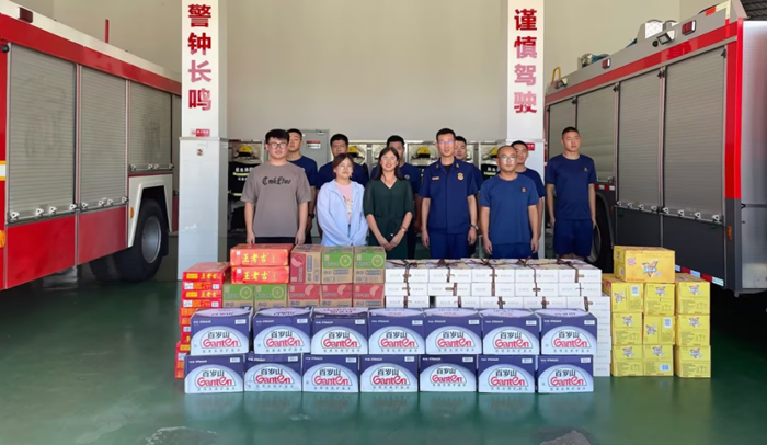 7月驕陽似火,棲霞區(qū)消防大隊的消防戰(zhàn)士們?nèi)悦爸崾願^戰(zhàn)在一線。7月27日,南京海陵藥業(yè)有限公司工會主席、安全環(huán)保部負責人等代表公司來到棲霞區(qū)馬群消防中隊進行慰問,給奮戰(zhàn)在滅火救援前線的消防救援人員致以親切問候,感謝他們對海陵消防工作的指導和關(guān)心,更感謝他們?yōu)槿嗣袢罕娕艖n解難,并送去清涼解暑的水果、飲料、礦泉水,來緩解酷暑。消防隊員也對此次的到訪慰問表示感謝。