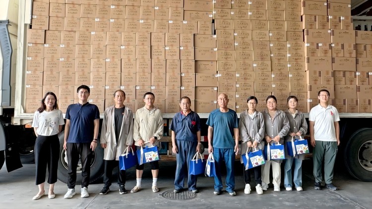 南京海陵黨支部書記李靜、黨支部副書記車越、財(cái)務(wù)部部長郭垂來代表工廠慰問奮戰(zhàn)在一線的員工,為他們送上防暑禮包。